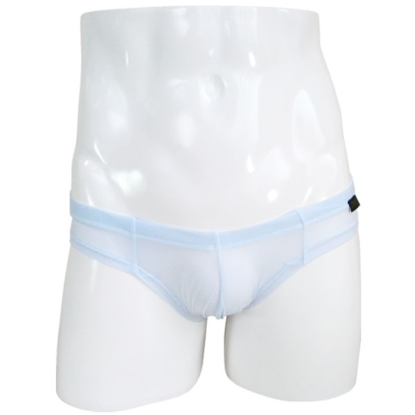 透け感がセクシー!フィット感抜群の男性用ハーフバックショーツ(L)。水色の柔らかいストレッチ素材を使用!もっこりしたアソコが楽に収まると評判なんです!股上浅めでどんなボトムでもOKな、メンズ用のローライズハーフバックショーツです。