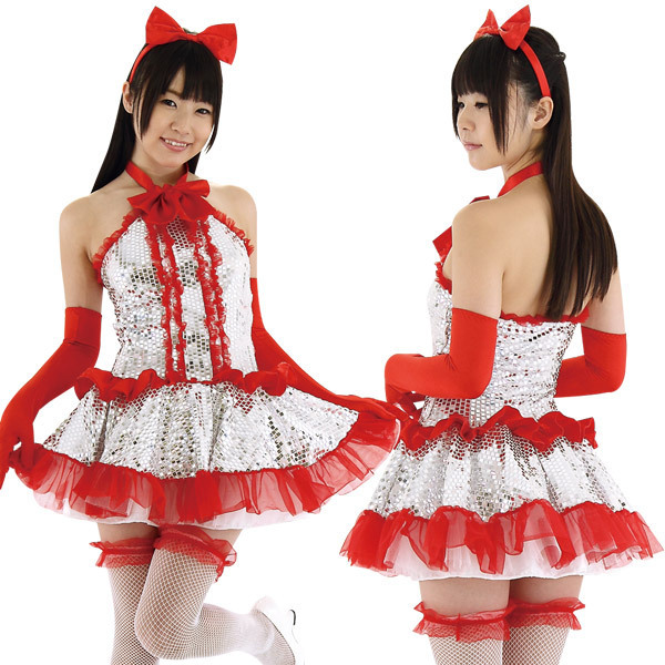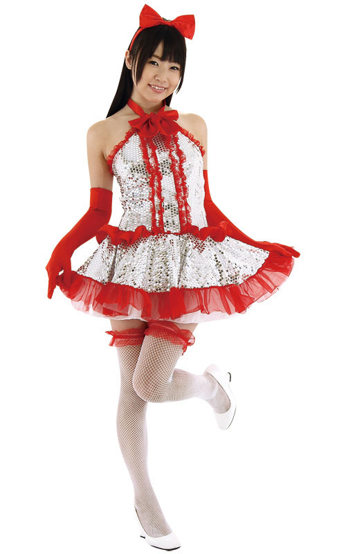 アイドルのステージ衣装の通販ならこちら♪ダンス衣装や仮装大会などの余興、ハロウィンイベントに学園祭などにも活躍していただけるアイドルステージ衣装です。これであなたも神アイドルに!全身コーデの超豪華なアイドルコスプレセット。キラキラのシルバースパンコールが眩しいワンピースに、真っ赤な手袋とリボンカチューシャ、キャットガーターもセット。愛と勇気と魔法の乙女になりきれちゃうアイドルコスチュームです。コスプレイヤーや現役アイドルが着るような(コスチューム、コスプレ衣装)アイドルステージ衣装の通販ならお任せください!※ストッキングは付属しておりません