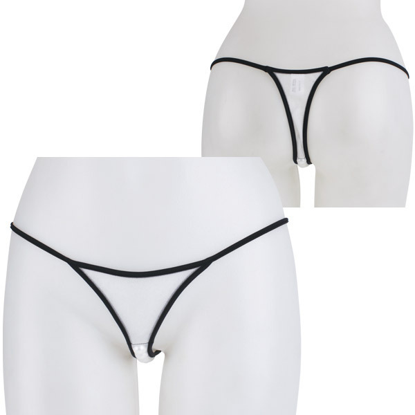 連なる8つのパールとメッシュ生地の透け感にドキドキするGストリングショーツ(M)。●ホワイトメッシュ素材●ショーツ全体を細めの黒ストリングで縁取り●クロッチにパール入り●後ろはセクシーなTバック仕様●日本製。普段甘えベタな女性も、これを履けばちょっぴり大胆になれるセクシーな大人ランジェリーです。