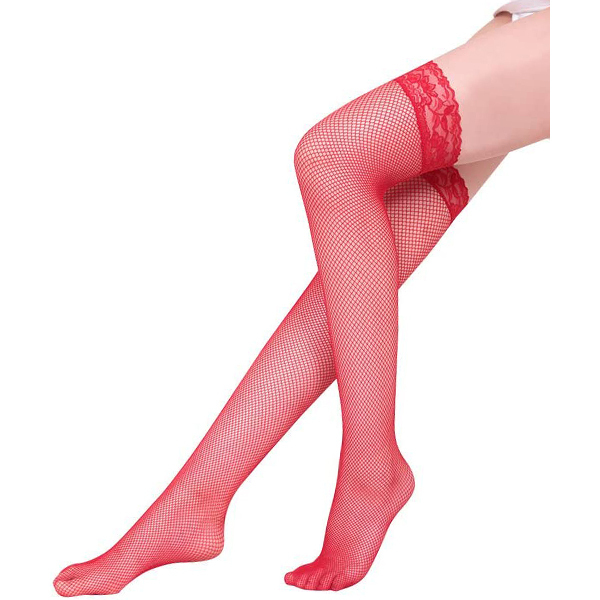 <EROX>履き回し力抜群の中ネットタイプ!レース付きのガーター網ストッキング。●インパクト抜群のレッドカラー●程よく肌見せできる中サイズの網目●つま先切り替え無しタイプ●エレガントな花柄レースの履き口。セクシーさをプラスするランジェリー代表格の網ストッキング!つま先切り替えが無いのでサンダルでも履けちゃいます。