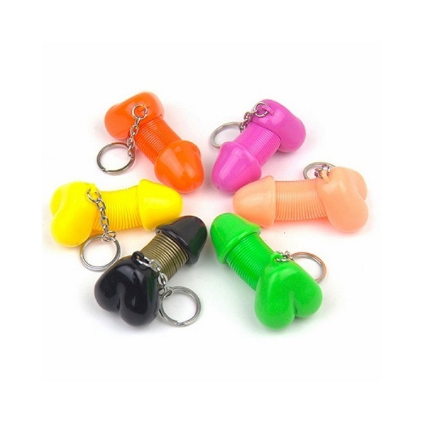 全長約4.7cmの小さくて黒いペニス型キーホルダーが登場!プラスチック素材を採用で、亀頭とタマ部分を引っ張るとスプリングになったサオ部分がびよーんと伸びる♪キーホルダーは丈夫なリング仕様だからどこかで失くす心配もありませんし、手が空いたときにずっと伸び縮みさせていると、だんだん生き物のように愛着が湧いてくるかも!?ジョークグッズだけでなく、風俗店舗様などのノベルティグッズとしてもぜひどうぞ!