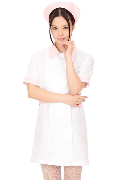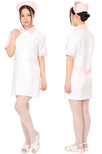 白をベースとしたシンプルなナース服に、優しい淡いピンクカラーをポイントにしたミニ丈ナース服。ワンピース、ナースキャップとピン2本のセット!ハロウィンや忘年会、宅コスに是非どうぞ♪
