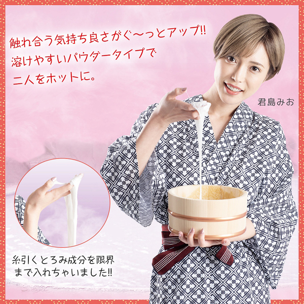 ラブタイムをもっと盛り上げる!ぬるぬるエッチなヌルとろローション♪癒される温泉風ローションの素が、溶けやすいパウダータイプで二人を温めます。触れ合う気持ち良さが、ぐーとアップ。えっちなぬるぬる刺激が楽しい&きもちいい!女性たちがモニターテストを繰り返し、ラブラブになれる糸引くとろみ成分を、限界まで入れちゃいました。ホテルや自宅で、にゅるにゅるローションプレイが実現できます!美人の多い信州長野。その由来とされる「美人の湯」アルカリ性単純温泉をイメージ。名産ブルーベリーの香りと、セクシーな紫色がバスルームを彩ります。
