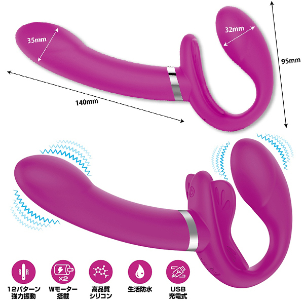 ストラップレス ストラップオン デュアル バイブレーター