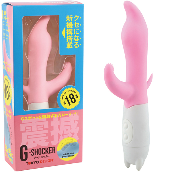 Gスポットを擦るように刺激!初心者からベテランまで対応可能な多点責めバイブ「震撼 G−SHOCKER」です。クセになる新機構を搭載していて、まるで指や舌のような滑らかな動きが楽しめるのが特徴です♪Gスポットを刺激するWローラーは3種の強弱3段階の切替が可能!無数の柔らか突起が付いたクリバイブは6種の振動パターンを搭載していて、挿入部とクリバイブはそれぞれ別スイッチで自分好みの調節が可能となっております。先端部分の突起で奥までしっかり刺激!ミニバイブでもしっかりとした力強さを感じられ、生活防水加工を施してあるので水洗いも可能です。