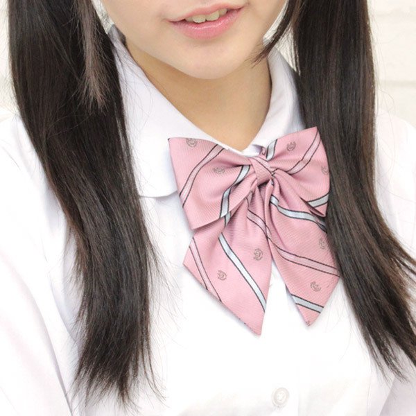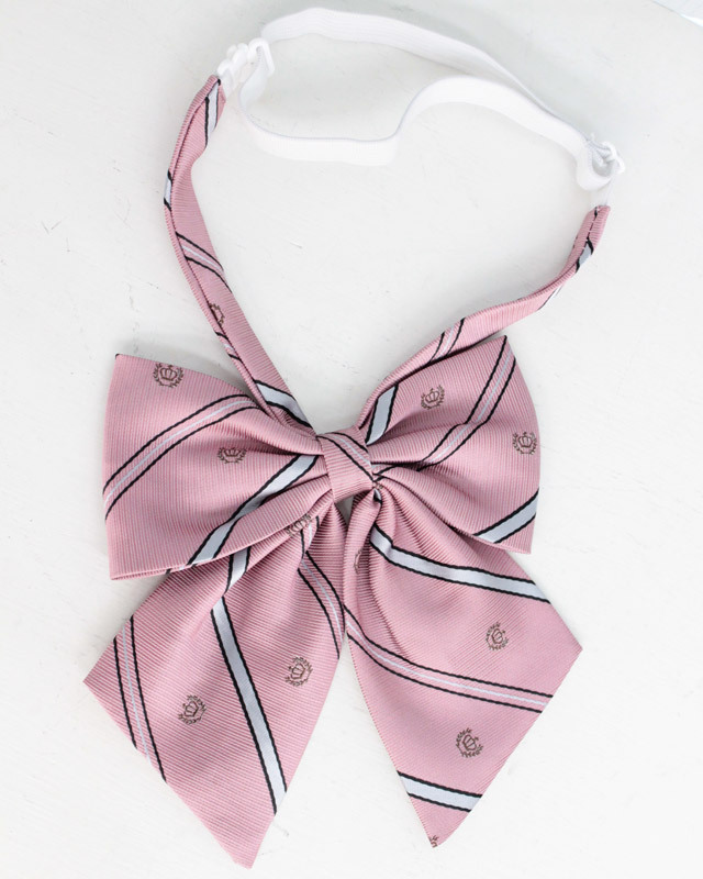 シャツやブラウスの襟元に!制服コスプレに超似合う、ピンクの単品スクールリボン。薄いピンク色×斜めストライプが激カワな王冠模様入りスクールリボンです。既に形が整っていて、着脱も簡単!コーディネイトに大活躍するコスプレ小物です。※こちらの商品は在庫の状況によりお届けまでに4日〜7日程度かかる場合がございます。