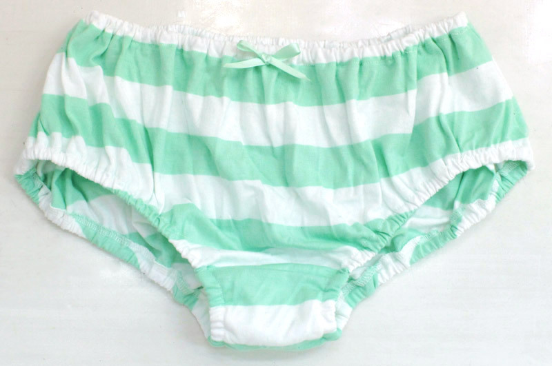 お尻スッポリ、ゆったりした履き心地!白と緑のボーダーがラブリーなしましまショーツ。スカートめくりされてもへっちゃら!たっぷりとした生地で作った深型ボーダーショーツは、可愛さあふれるれっきとした「見せパン」です。※水洗い不可、塩素系漂白剤による漂白不可、アイロンは中温で当て布使用、ドライクリーニング可、色落ちの可能性があります。※こちらの商品は在庫の状況によりお届けまでに4日〜7日程度かかる場合がございます。