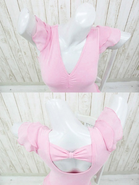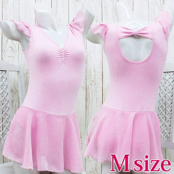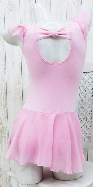 360度抜かりなしの可愛さ♪バックリボンデザインがキュートなバレエレオタード。●女の子らしいピンクカラー●フリリーなフレンチスリーブ●フロントはすっきりとしたV字カット●バックリボンで後ろ姿にもアクセント●ひらりと軽やかなスカート付き●一部当て布付きで安心。ピンクのレオタードをフリルとリボンで飾ってラブリーに!可愛さを目いっぱい詰め込んだ王道デザインのバレリーナコスチュームです。※水洗い不可、塩素系漂白剤による漂白不可、アイロンは中温で当て布使用、ドライクリーニング可、色落ちの可能性があります、ご注意ください。