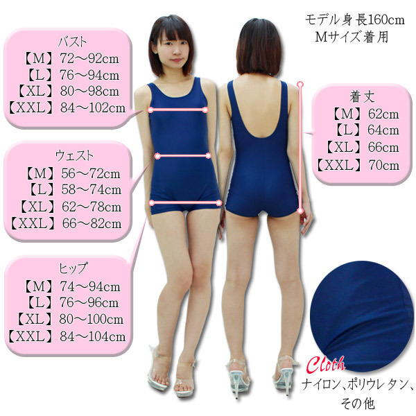 安心縫製の裏地&パッド付き♪ズボンタイプの本格的なスクール水着コスチューム(Mサイズ)。王道の紺色スク水!ズボンタイプなので気になる部分もカバー出来ちゃいます。前身頃全面に裏地&胸部にパッドを付けたしっかり縫製の本格仕様で、夏のプールにも撮影の被写体用コスプレにもぴったりです。※液温30度洗濯可、漂白剤による漂白不可、アイロン・タンブル乾燥不可、ドライクリーニング不可。