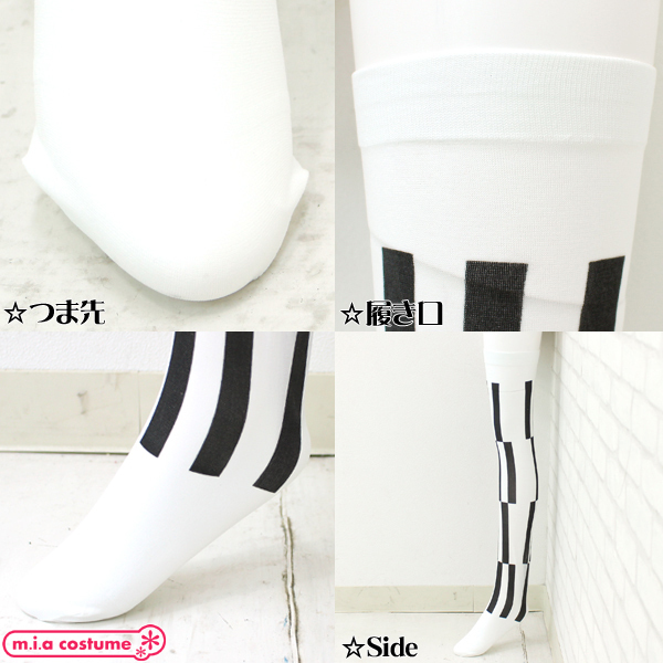 ゴシック&ロリータファッションと相性抜群!ブロック模様の白黒ストライプ柄ニーハイストッキング70cm。個性的でお洒落なデザインで足元を可愛くコーディネートしよう♪コスプレやハロウィン仮装と合わせても◎※色落ちの可能性があるため、塩素系漂白剤での漂白&水洗い不可。※水洗い不可、塩素系漂白剤による漂白不可、色落ちの可能性があります。※こちらの商品は在庫の状況によりお届けまでに4日〜7日程度かかる場合がございます。