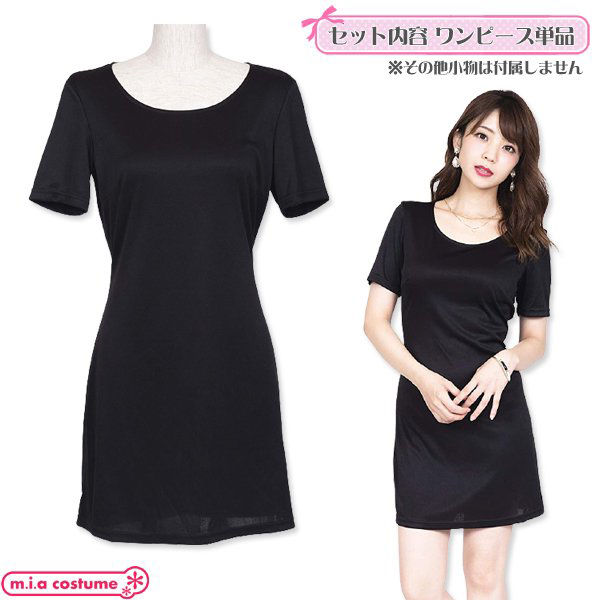 対応サイズ:身長155〜165cm・B〜90cm・W〜70cm・H〜96cm 実寸:B88〜90cm・W72cm・肩幅38cm・袖丈20cm・着丈80cm セット内容:ワンピース単品(背中心ファスナー) 素材:ポリエステル100% モデル身長155cm