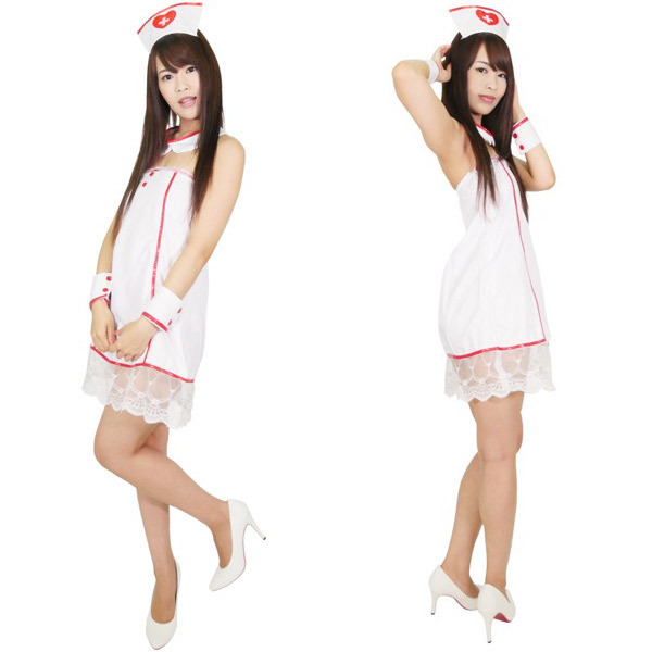 幅広の裾レースがポイントのワンピースと、カフス&付け襟&キャップがセットになったセクシーデザインのナース服コスチューム。パーティーやイベントにだってバッチリ♪プチプラで気軽に楽しめる『コスらぶ☆』のコスチュームです。サイズはおおよその目安となりますので、表記サイズを基準に前後でお考えください。