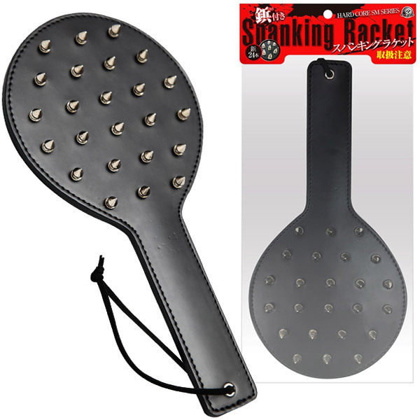 究極のお仕置きプレイに♪SM上級者向けの鋲付きスパンキンググッズ「鋲付きスパンキング ラケット」。24本の鋲を備えたハードなラケットでフルスイング!鋲は片面のみなので、裏側の平らな面でスタンダードな調教プレイも可能です。【素材】ラケット:PUレザー/鋲:亜鉛メッキ。