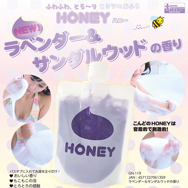 寒い季節に♪異性を誘惑するエキゾチックなサンダルウッド(白檀)と、優しく穏やかなラベンダーをミックスさせた「honey」の新作入浴剤が登場。ふわふわ泡とトロトロ滑らかな質感に包まれながら、雰囲気漂う癒しの香りを胸いっぱいに吸い込みながら極上のバスタイム♪1人は勿論、パートナーと楽しんでコミュニケーションを深めても◎使用後はシャワーでサッと流すだけ♪
