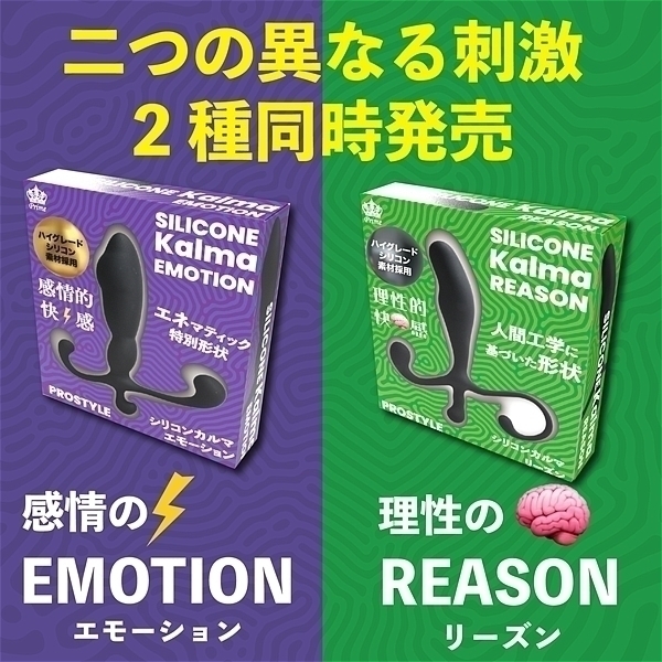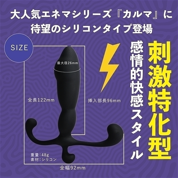 大人気エネマシリーズ<カルマ>に肌心地・挿れ心地にこだわったシリコン素材バージョンが登場。エモーションはシリコンカルマ独自の新デザインになります。挿入時の前立腺への刺激とサイズ感を徹底的に追求した膨らみのある設計です。滑らかな触り心地の高品質シリコン採用。上質な使い心地を楽しめます。