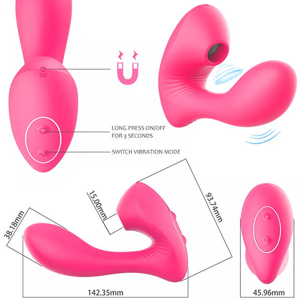 バイブのように挿入して使う?それともクリ吸引を楽しんでみる?普通のバイブに飽きたらこちら♪「ワイヤレス吸引バイブ 7吸引パワー+10振動パターン」。ワイヤレスで機能する吸引バイブで、普通のバイブみたいな感覚で手軽に使え、クリ吸引も楽しめるバキュームマシンとなっています♪全体のルックスはどことなく高級感のあるモデルで、挿入シャフトは先端に膨らみを持たせながら緩やかにカーブしたフォルムというのが特徴的。これさえあれば、クリトリス吸引を楽しみながらGスポットもしっかりと刺激していただけます♪機能性と扱いやすさですが、振動、吸引の電源が別れているので、ボタンを3秒間長押しする事で電源のONとOFFを切り替えられ、電源ONの状態でボタンを押すごとにパターン変更が可能。バイブレーション機能と吸引機能を上手く駆使して、最高の愛撫をたっぷりとお楽しみください♪※振動、吸引の電源は別れており、ボタンを3秒間長押しする事で電源のonとoffを切り替えられ、電源onの状態でボタンを押すごとにパターンを変更できます。