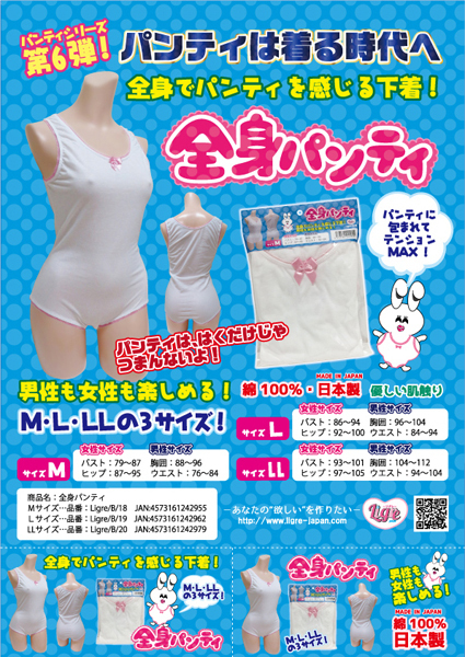 ついにパンティを着る時代が到来!優しい肌触りの綿生地が全身を包み込む男女兼用の日本製レオタード型パンティ。股の部分には本格的なクロッチ付!リグレジャパンの匂いグッズ「聖の聖臭」シリーズと組み合わせてみても◎