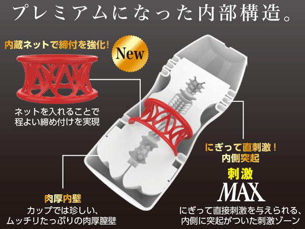 締め付け好きなら試してみる価値アリ!奥へ行くほど刺激的な贅沢肉厚仕上げの使い捨てオナホ。むっちりとした内壁で包み込み、内部の突起でダイレクトに刺激!内蔵されたネットリングがしっかり締め付け、さらに握ることでより快感が高まります。フィルムは丈夫で強く握っても破れにくい!ローション付きで届いたその日に直ぐお楽しみいただけます。