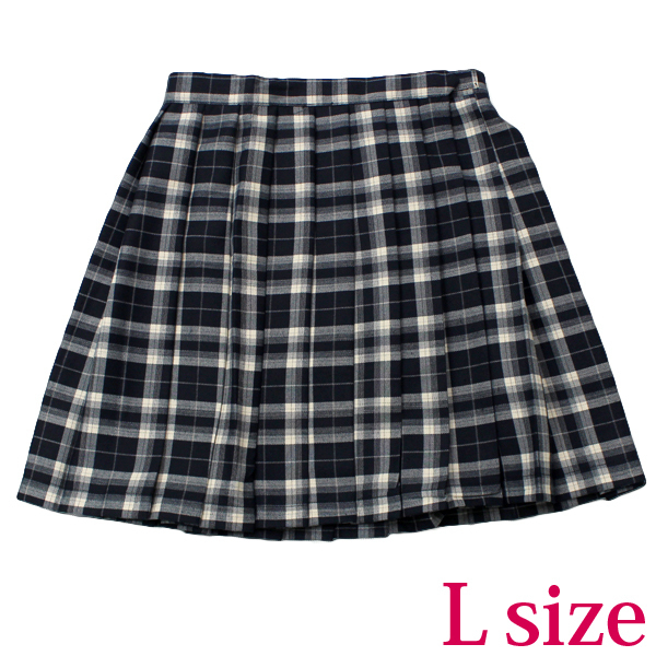 > 【830円★数量限定】ポケット付きのチェック柄プリーツスカート単品 濃紺×クリーム Lサイズ<お一人様1点限り>
