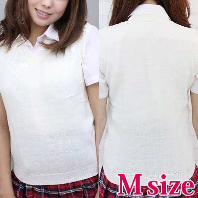 制服コスプレと相性抜群!オールシーズンOKな白無地ニットベスト単品(M)。マルチに活躍する定番のVネックベストは、ブレザーの下に着ても、そのまま白シャツに合わせても可愛い!1枚あると便利なコスプレ小物です。※水洗い不可、塩素系漂白剤による漂白不可、アイロンは中温で当て布使用、ドライクリーニング可、色落ちの可能性があります。※こちらの商品は在庫の状況によりお届けまでに4日〜7日程度かかる場合がございます。