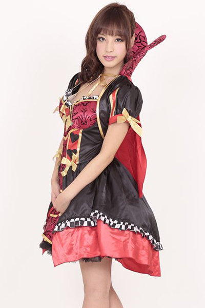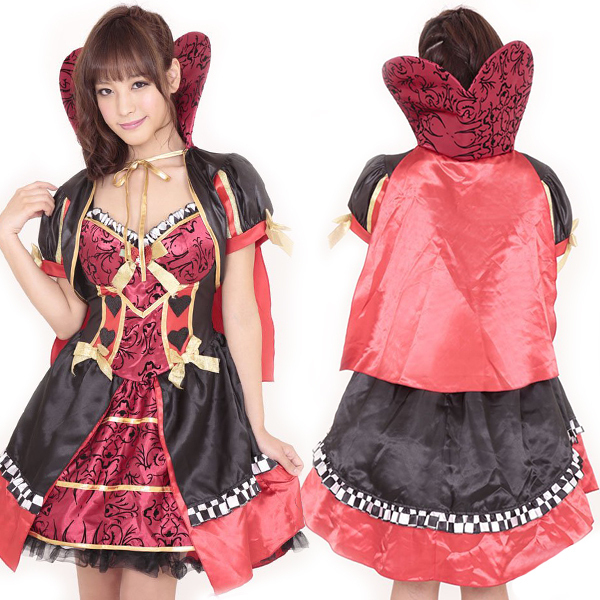 ちょっぴりダークなハートのプリンセス♪ゴージャスなワンピースドレスのハロウィン衣装。●赤、黒、ゴールドカラーのドレス●コルセット風にメリハリをつけたグラマラスフォルム●ハート型の立襟がラブリーなボレロマント。ぷっくりパフ袖がキュートなマント付きのボレロは、立襟を大きなハート型にデザイン!ドレスと同柄で統一感のある仕上がりに。可愛いだけじゃ物足りない!そんな貴方にぴったりのゴージャスなハロウィンコスチュームです。※こちらの商品は受注発注商品の為、ご注文から発送まで2〜3営業日掛かる場合が御座います。