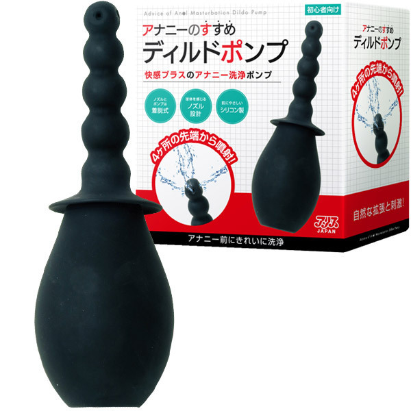 本番前から気持ちいい『アナニーのすすめ』シリーズ!刺激と洗浄が同時に出来るアナニー洗浄ポンプ「アナニーのすすめ ディルドポンプ」。容量160mlのポンプ部分に水を入れてプッシュすると、4箇所の先端穴から噴射!ノズルは出し入れ時にポコポコと球体を感じる凸凹設計。ポンプとノズルは便利な着脱式、素材は肌にやさしいシリコン製です。洗浄しながら挿入し、快感も得られるポンプディルド!洗浄器具として使うだけでなく、ディルドとしても使用可能!ローションを入れればヌルヌルピストンを楽しめます。