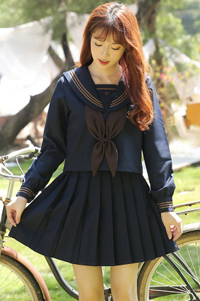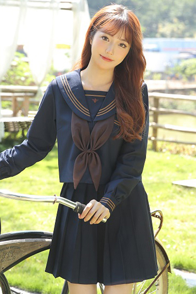 <malymoon>紺×茶クラシック長袖セーラー服
